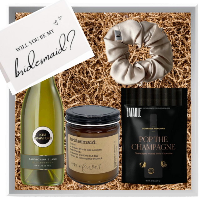 If you're looking for an elevated way to ask your girls to join your bridal squad, The Bridesmaid Box is perfect. It includes: